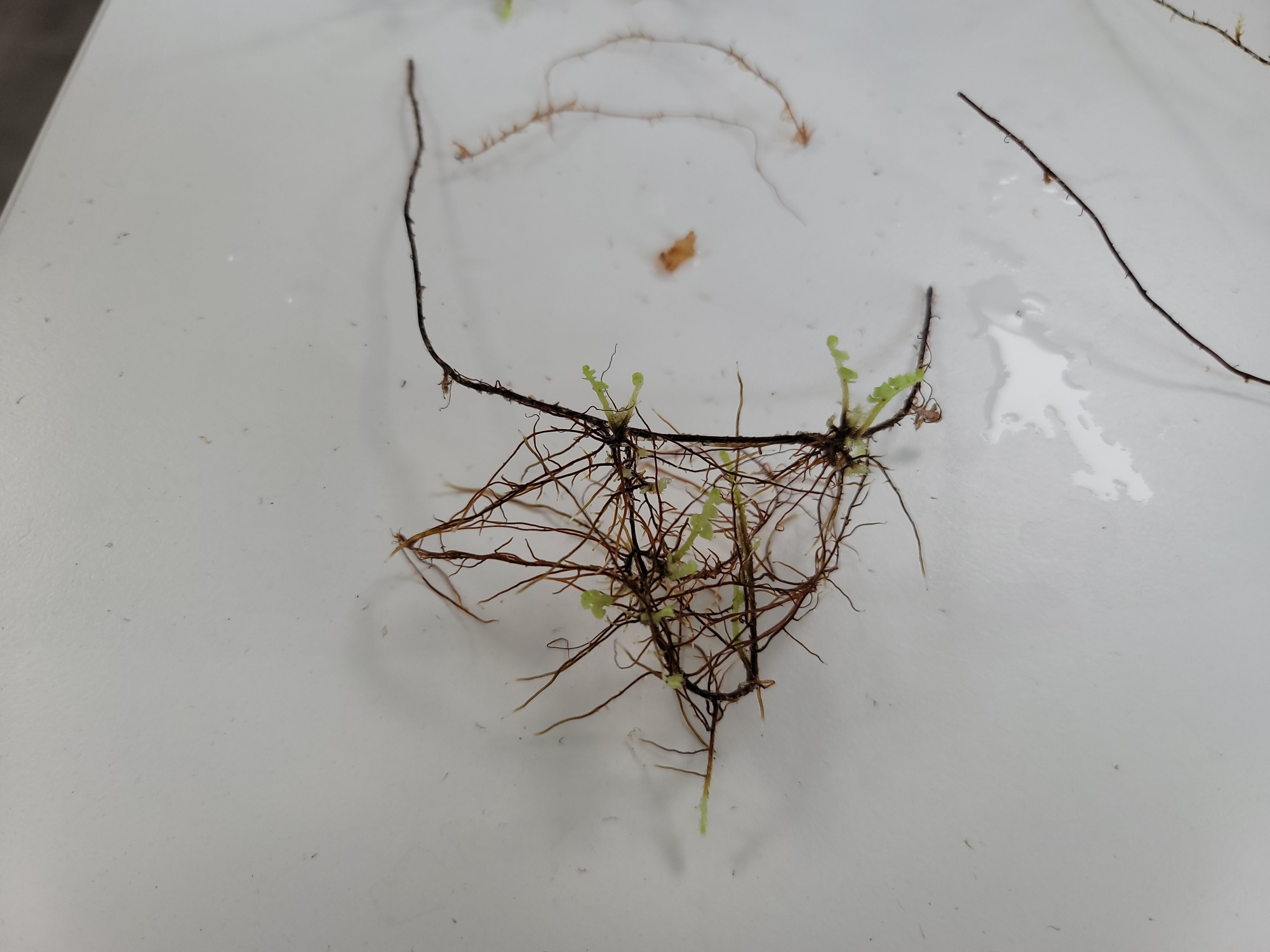 2주 후에 꺼내보니 뿌리가 엄청 자라 있었다.