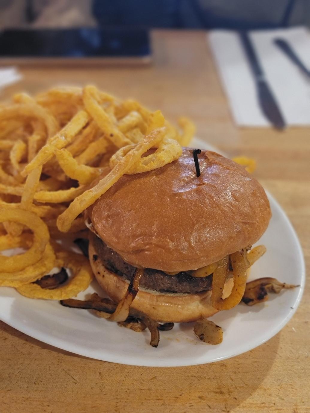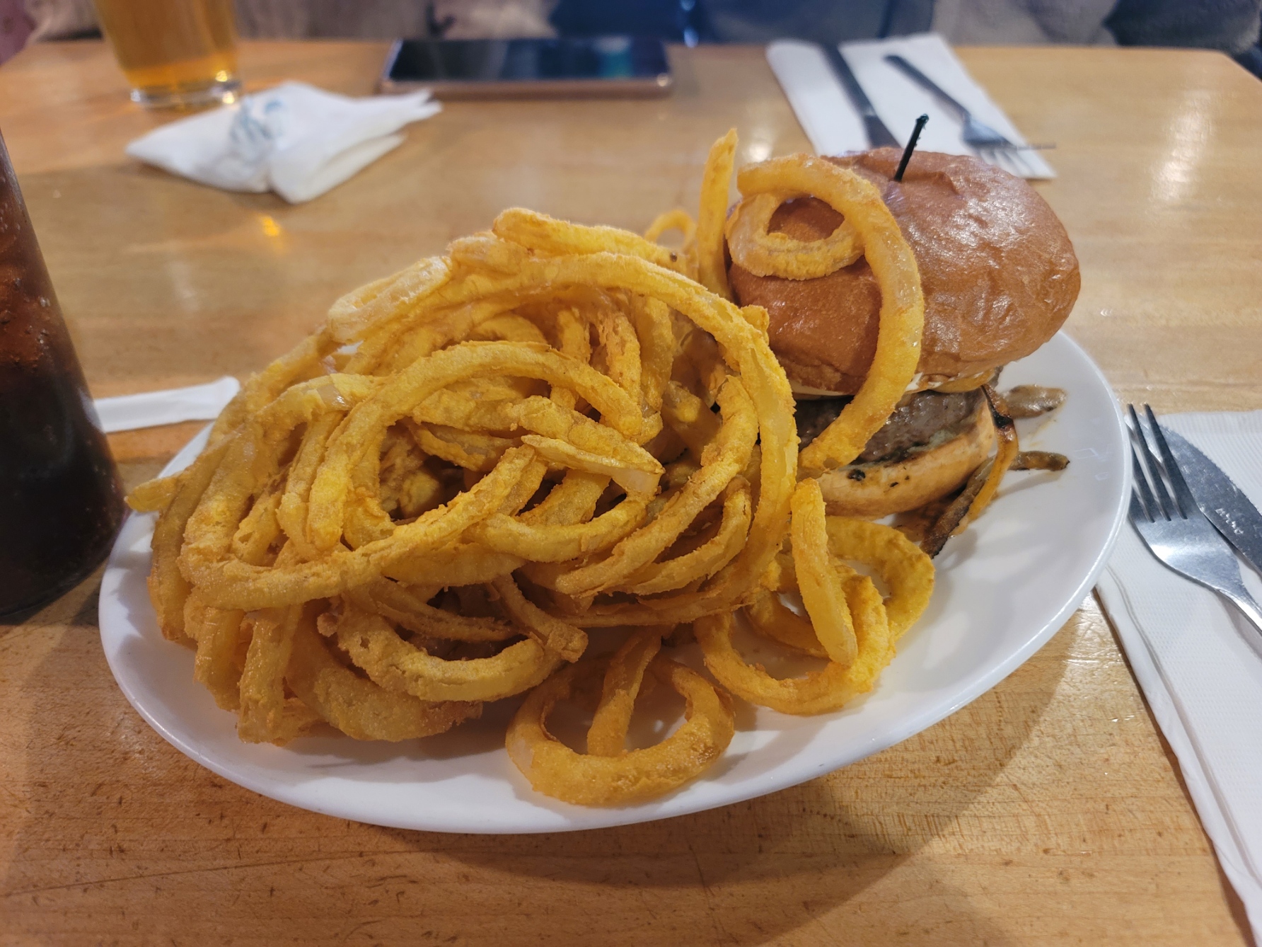 사이드를 어니언링으로 변경하여 추가로 $2.25를 냈다.