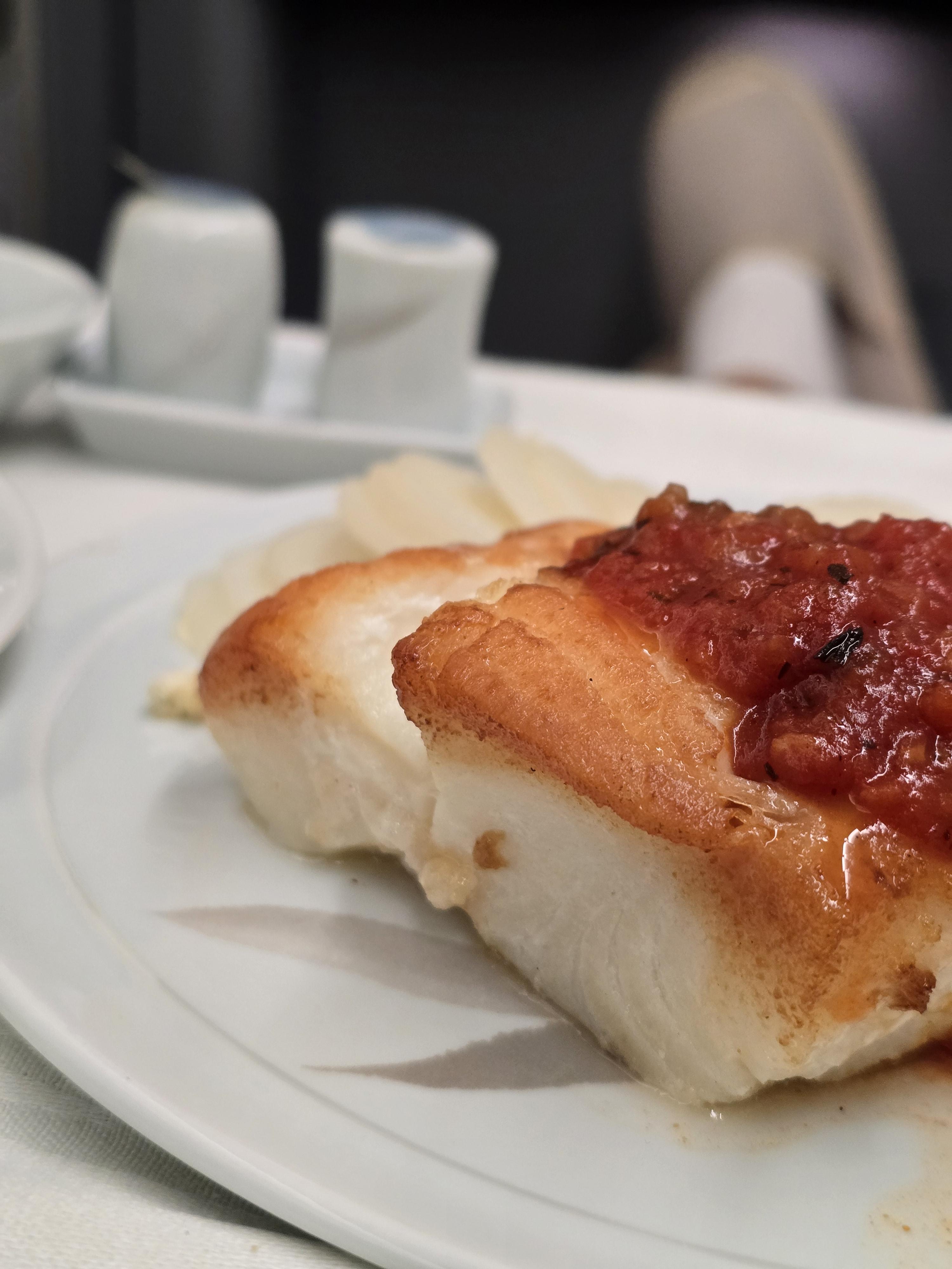 <인천-보스턴행 두 번째 기내식 : 토마토소스의 광어구이>