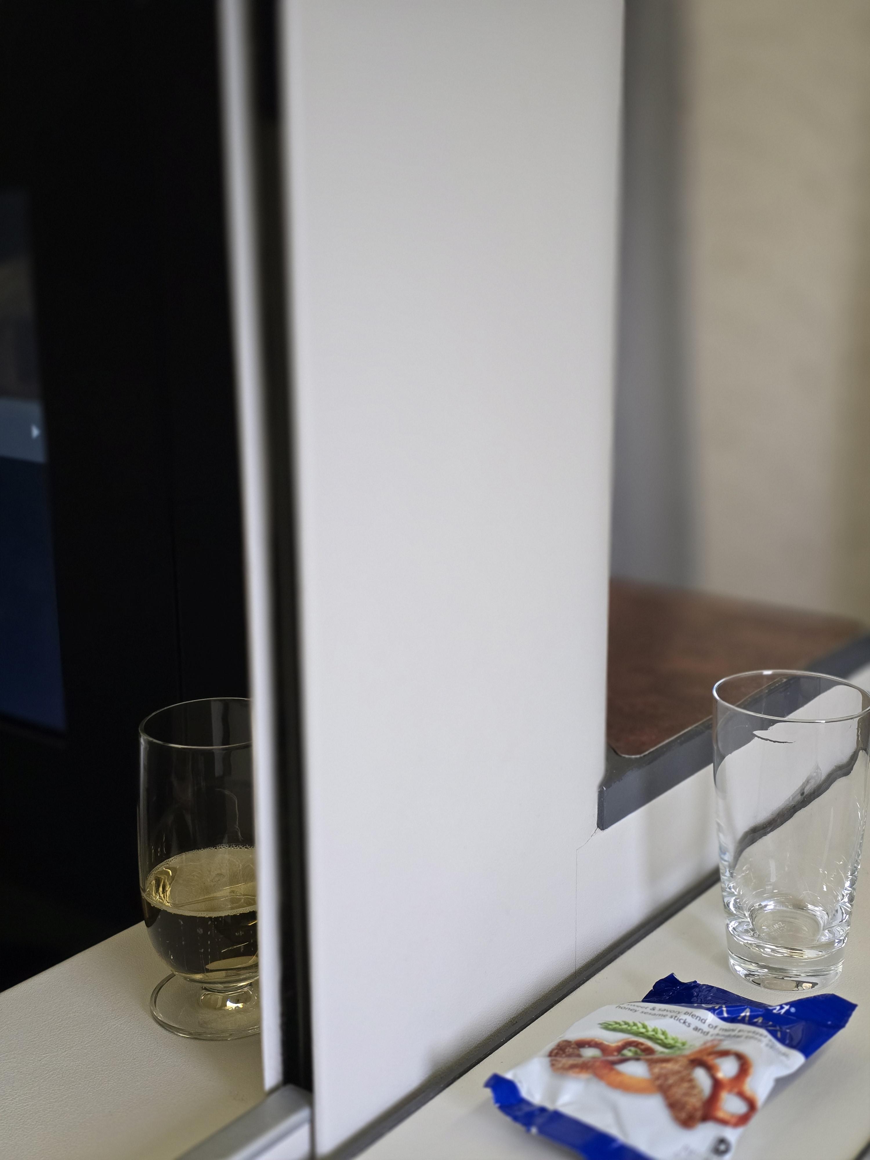 승무원분이 쟁반에 샴페인, 물, 주스 등을 서빙해 주시는데,